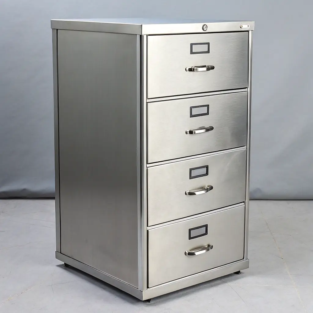This metal filing cabinet offers secure storage with multiple drawers, each equipped with a lock for confidentiality. Its compact design fits well in office spaces, providing organized storage for documents, files, and office supplies. The durable construction ensures longevity and stability. An essential addition for maintaining an organized and secure office environment.